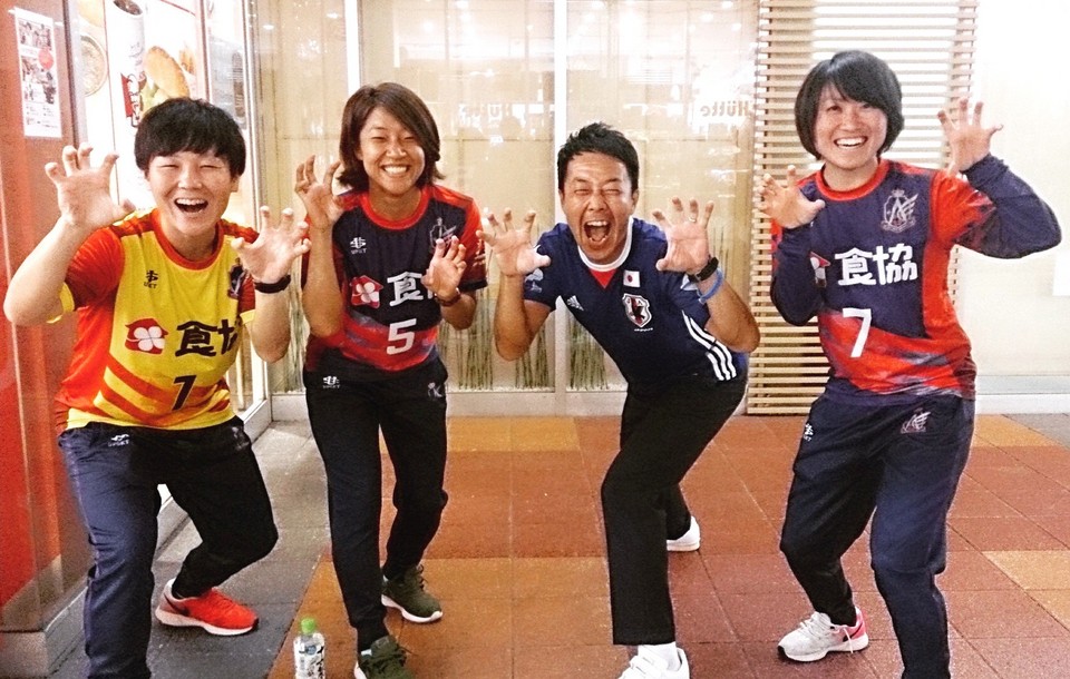 (一緒に盛り上げて下さったアンジュヴィオレ広島の選手と「届け浅野君へ」のジャガーポーズを♪)