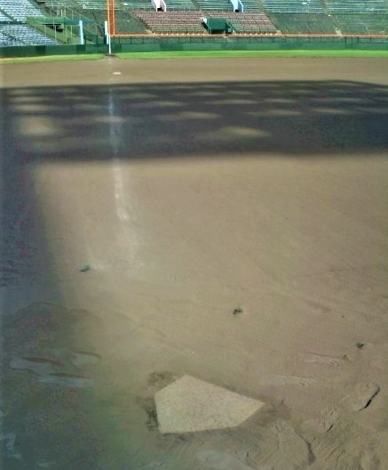 ダイヤモンド(内野)の黒土が新鮮に蘇る、「あのサード」をご覧ください。