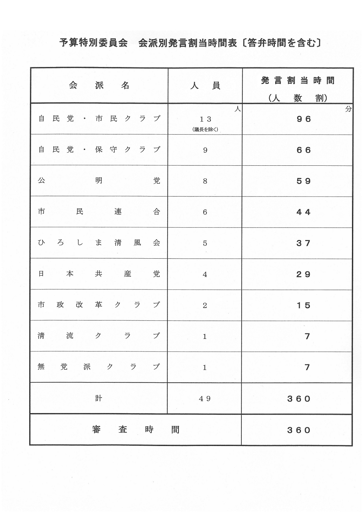 会派の時間が「何分」であろうとも、この辺りを考慮して。