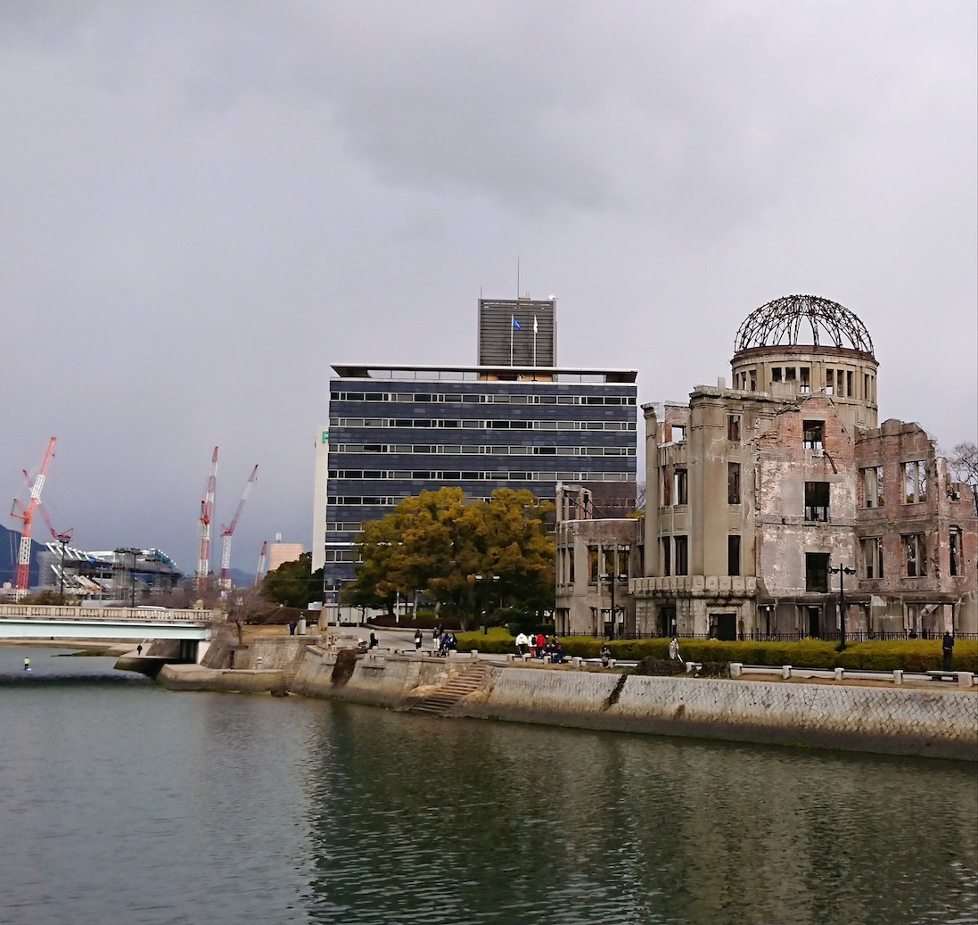 原爆ドーム、負の遺産の背景に位置する…
