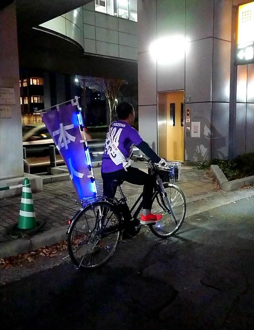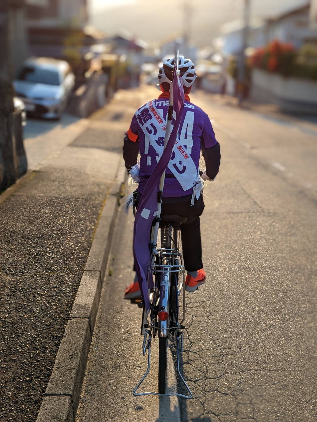 最低限は“視認”されるよう、派手な自転車での走行ですから。