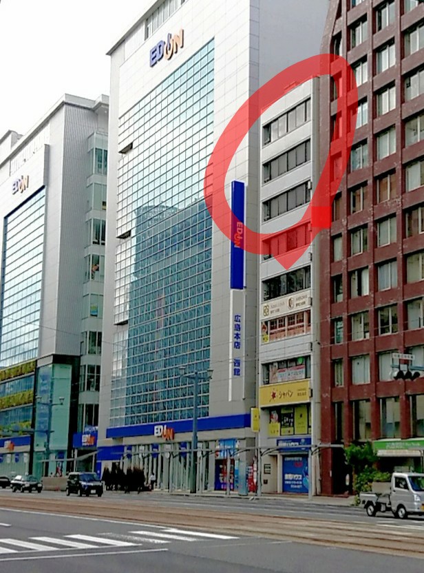 これまた現在の「エディオン本店」ツインタワーの隣に。