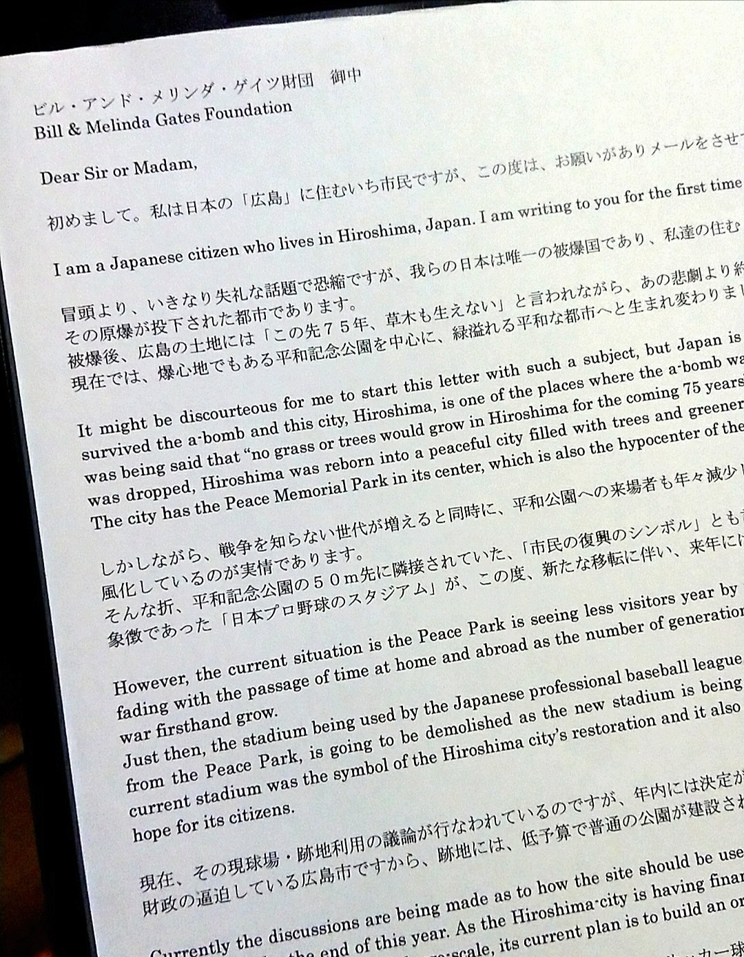 それは真剣に。大真面目に。ビル・ゲイツ財団に。