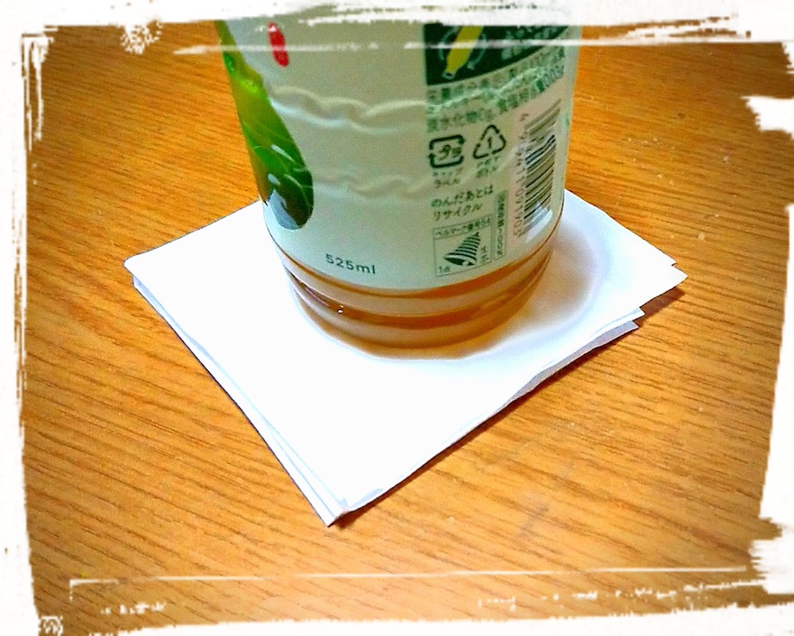 急ごしらえの簡易コースターを作り、ボトル下に敷いてあげるんです。