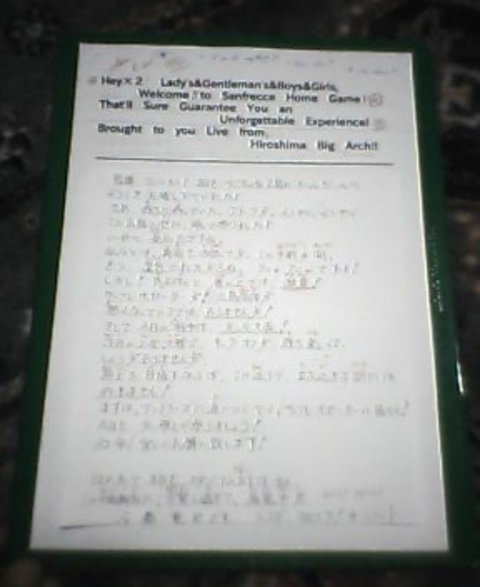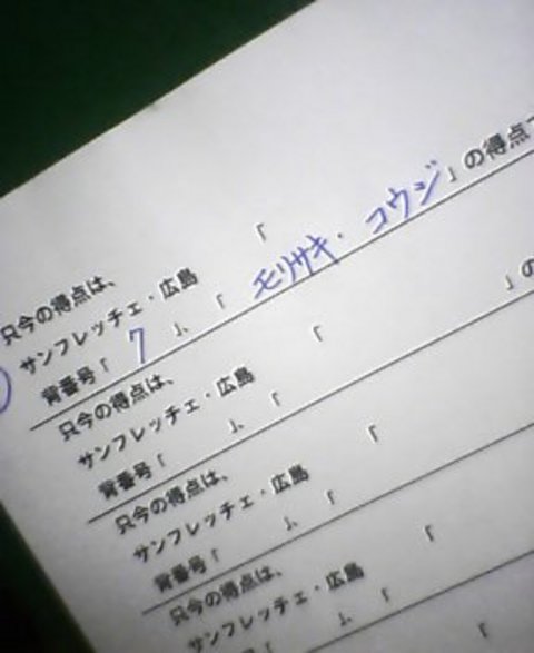 いつもより、念入りにゴール・コールをしました!(笑)写真はその得点原稿です。