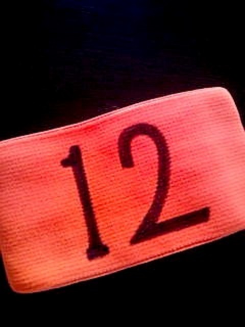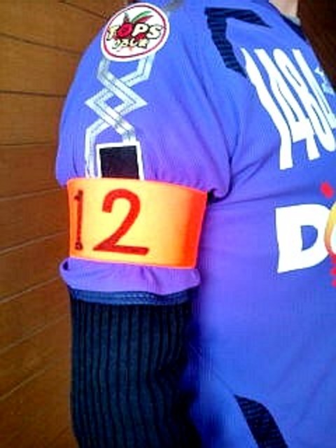 サポーターの番号「12」を書き込み、その後、2ndハーフとなった後半戦の2時間半を歩き回りました。