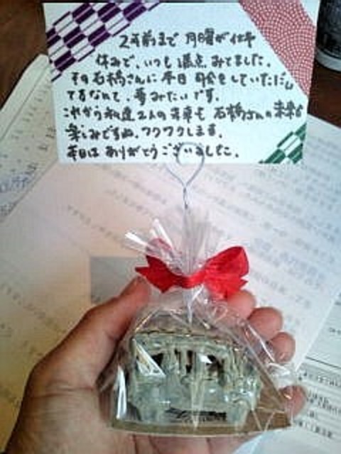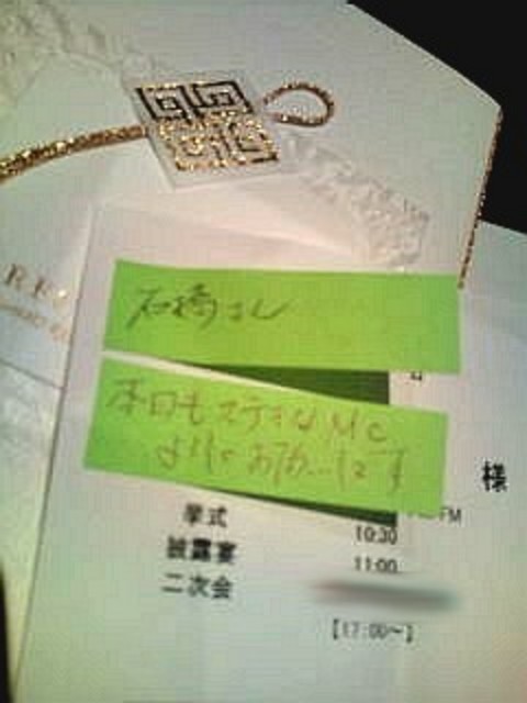 「石橋さん用・資料」「今日もステキなMC よろしくお願いします」との会場担当スタッフの文字。