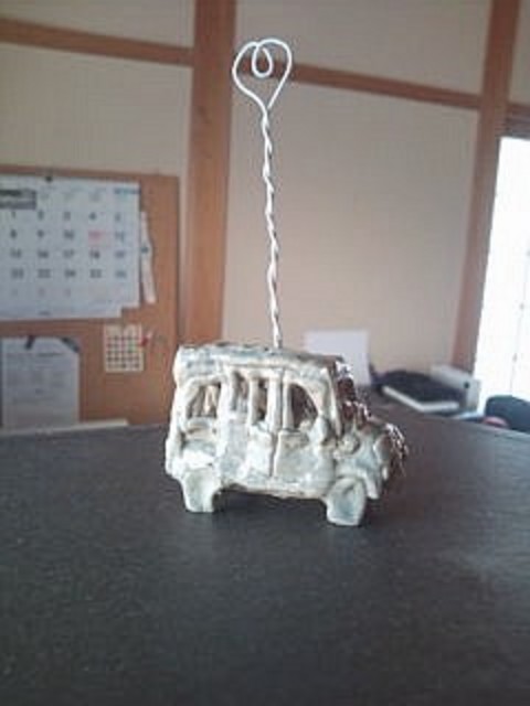 しかも、この席札を支えている「席札スタンド」は、車の形をした陶芸品。