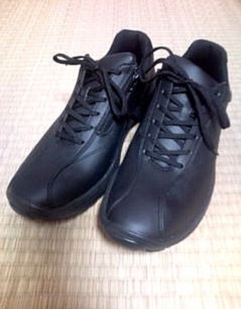 この黒い靴、ゴムっぽい合皮で、しかも“軌跡的な軽さ”を誇るのです!