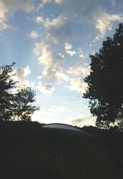 夕刻時、駐輪場から見える会場は、かくも幻想的であり。