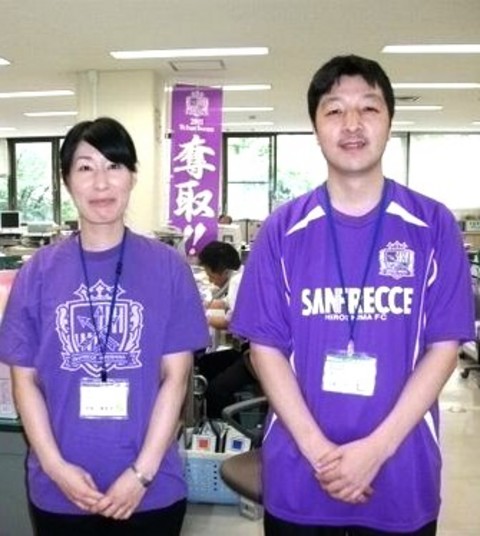 「安佐南区役所職員の皆様がサンフレッチェ広島のTシャツやポロシャツを着用」