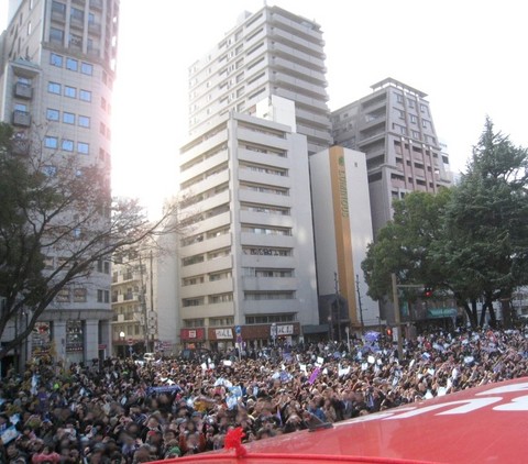 並びに、平和記念公園で行なわれた「優勝報告会」において。