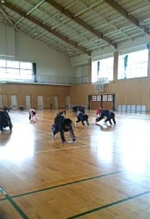 朝の8時に自転車をまたいで向かうは、日頃お世話になっている小学校の体育館を大掃除。