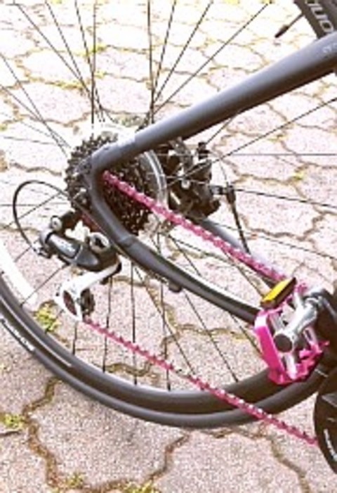 紫色のペダルに紫色のチェーン♪