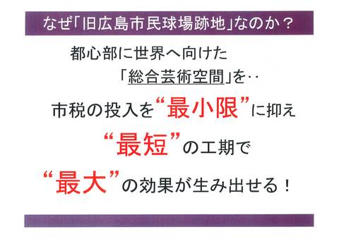 改めて、市税の投入を最小限に抑え、運営においても最大限の収益を得られ、立地による絶大な波及効果に、広島市のブランド力の向上。